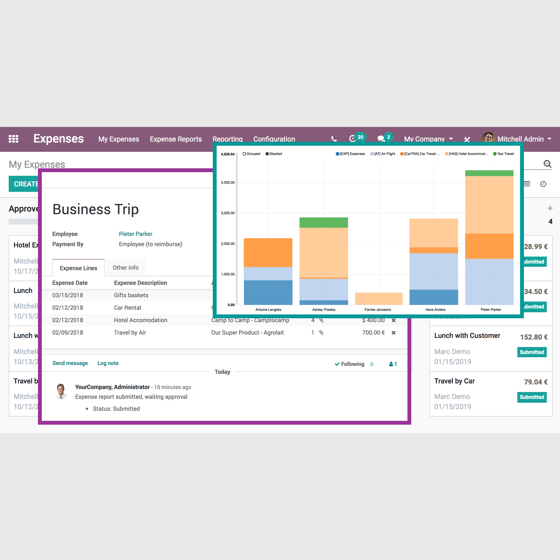 การแสดงข้อมูล รายงาน และสถิติของรายจ่ายใน ??? ERP ทำได้ชัดเจนเข้าใจง่าย สามารถดูได้หลายมุมมอง หลายเงื่อนไข มีตัวกรองข้อมูลมากมาย เช่นดูรายจ่ายตามประเภท ตามวันเวลา ตามรายบุคคลหรือทีม สถานะค่าใช้จ่าย สรุปรายเดือน สามารถแสดงเป็นตารางหรือแผนภูมิและกราฟแบบต่างๆ ที่ช่วยให้การวิเคราะห์ของฝ่ายบัญชีหรือฝ่ายบริหารทำได้โดยง่ายดาย ไม่ต้องพึ่งพาเอกสาร Excel หรือโปรแกรมสเปรดชีทใดๆ ที่ยากต่อการจัดเก็บ และยากต่อการแชร์กันระหว่างหน่วยงาน