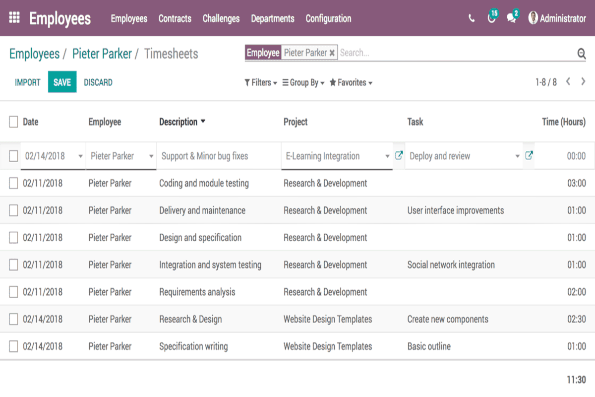 สำหรับบันทึกการทำงานของพนักงาน หน้าที่ที่ได้รับมอบหมาย เวลาที่ใช้ เพื่อนำไปบริหารโครงการ หรือประเมินค่าแรง ค่าล่วงเวลาได้